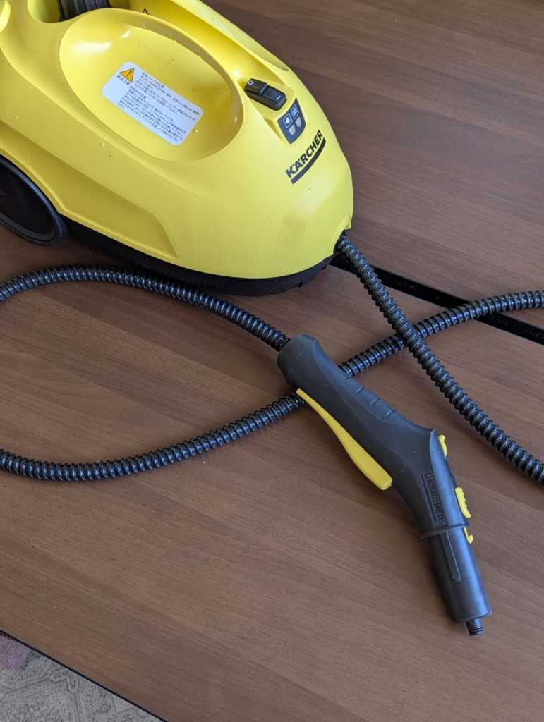 私の母親がだいぶ昔にテレビ通販で買って、未使用のまま置いてあるスチームクリーナー。