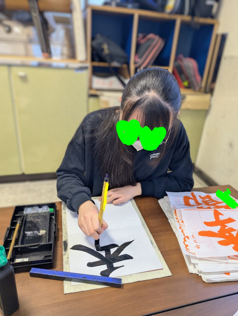 筆を使ってじっくりと、一画一画を確かめさせる。