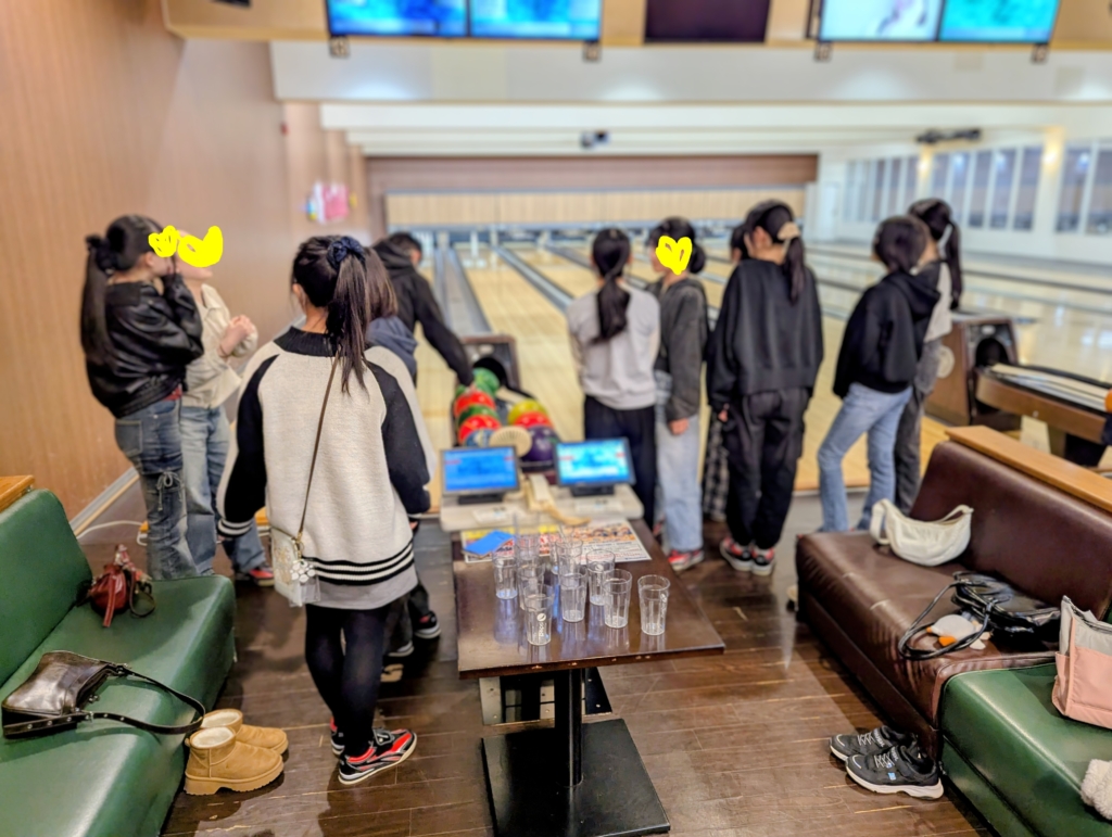 そしてカラオケ or ボーリングのグループ分けでは、全員ボーリング(笑)。今年はカラオケやる子はいないんだ。へー。